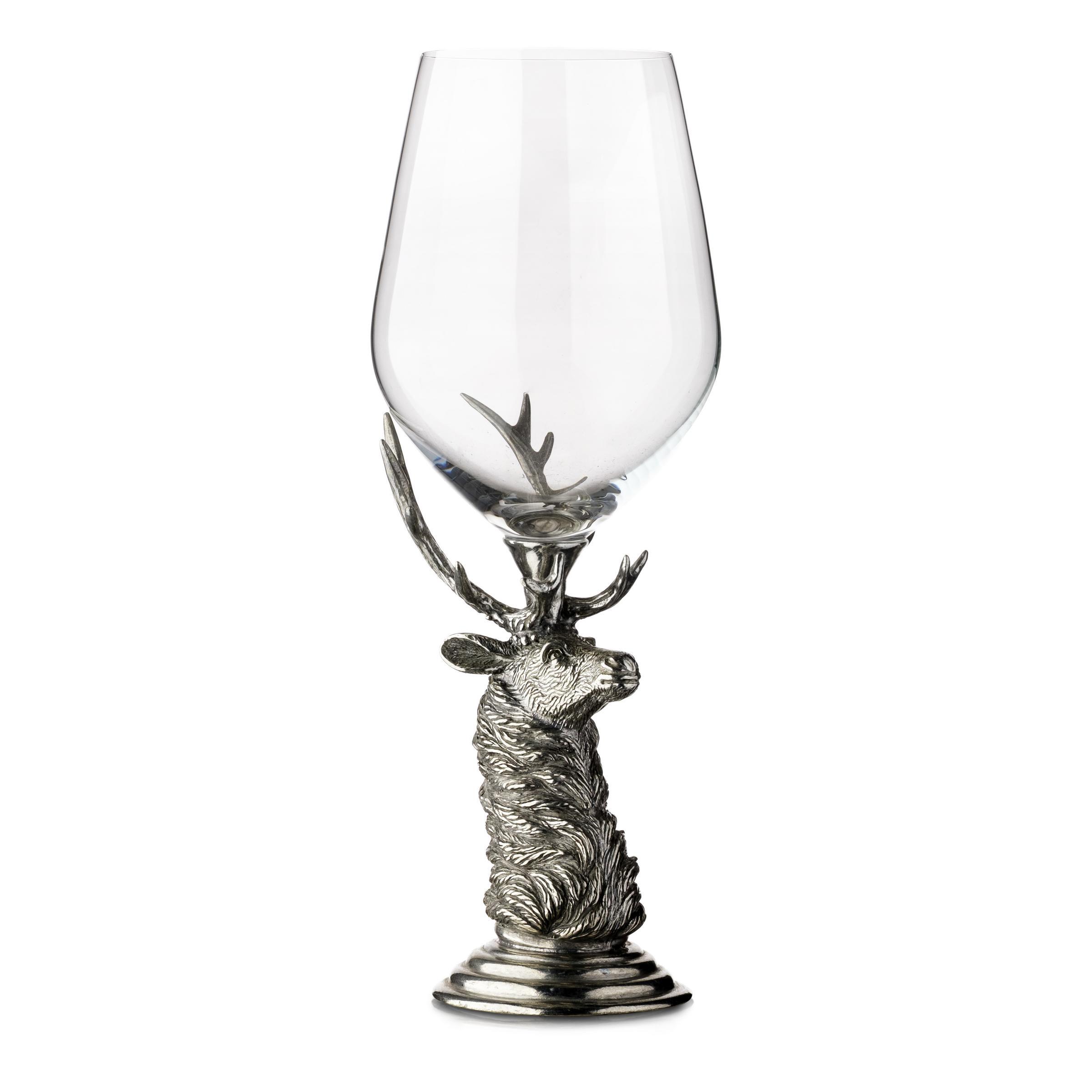 Experience the wilderness in style with this Versatile Pewter Elk Goblet from the Lodge Style collection. Uniquely crafted with Pewter forming an intricate figural head of a noble elk on the stem, these goblets are more than just drinkware – they’re conversation starters. The generously sized 9.5 H” 12.25 oz. glass, resting on a weighted base.